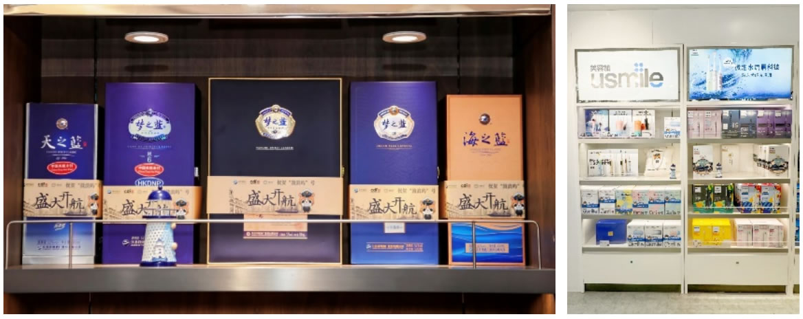 為了更好的提供客戶體驗,體會到“鼓浪嶼”號郵輪特有的上海風(fēng)情,cdf鼓浪嶼號免稅店就上海主題對船長酒廊進(jìn)行了裝飾,讓消費者感受到海上、家上海的風(fēng)格。