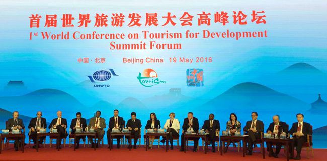 由中國政府和聯(lián)合國世界旅游組織共同主辦的首屆世界旅游發(fā)展大會于5月19日在北京開幕。全球107個國家、600名外國代表以及國內(nèi)有關(guān)部委、各省區(qū)市有關(guān)負(fù)責(zé)人,旅游研究機構(gòu)及院校、大型旅游企業(yè)負(fù)責(zé)人近千人齊聚北京,共商世界旅游業(yè)發(fā)展大計。本次大會以「旅游促進發(fā)展與和平」為主題,舉辦了開幕式、主旨演講、高峰論壇、二十國集團旅游部長會議等活動。