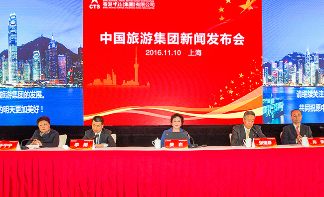 11月10日,在首次亮相上海國(guó)際旅游交易會(huì)前夕,中國(guó)旅游集團(tuán)在上海浦東星河灣酒店召開新聞發(fā)布會(huì),向媒體詳細(xì)解讀了未來(lái)發(fā)展戰(zhàn)略、目標(biāo)愿景、重點(diǎn)舉措等。中央電視臺(tái)、鳳凰衛(wèi)視、路透社、光明日?qǐng)?bào)、經(jīng)濟(jì)日?qǐng)?bào)、中國(guó)日?qǐng)?bào)、工人日?qǐng)?bào)、人民日?qǐng)?bào)海外版、中國(guó)青年報(bào)、環(huán)球時(shí)報(bào)、中國(guó)旅游報(bào)、新華網(wǎng)、人民網(wǎng)、搜狐、新浪、騰訊、網(wǎng)易、東方網(wǎng)、中國(guó)旅游網(wǎng)等50余家全國(guó)和各地主流媒體參加了發(fā)布會(huì)。