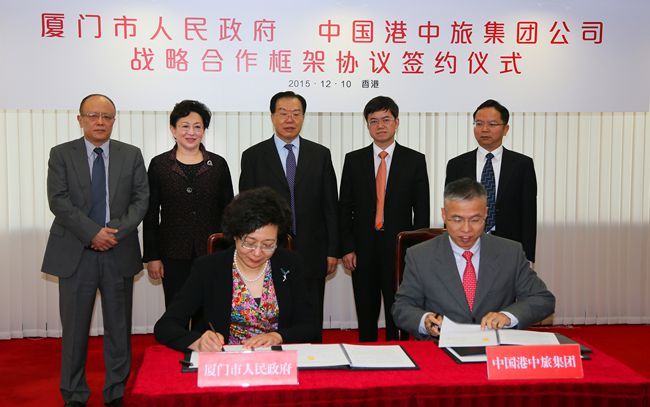12月10日,集團(tuán)張學(xué)武董事長、姜巖總經(jīng)理在集團(tuán)會(huì)見了廈門市人民政府裴金佳市長一行,雙方就深化合作進(jìn)行會(huì)談,並舉行《廈門市人民政府 中國港中旅集團(tuán)戰(zhàn)略合作框架協(xié)定》簽字儀式。