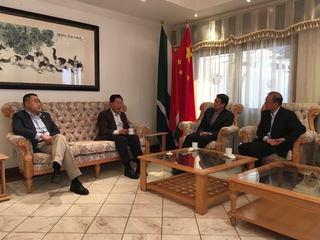 張學(xué)武董事長現(xiàn)場參觀了簽證中心服務(wù)大廳,與簽證中心管理團隊及一綫員工進行交流,瞭解簽證中心運作幷要求簽證中心在工作中要「講政治、重安全、提服務(wù)」,要充分展現(xiàn)港中旅企業(yè)的良好面貌。在南非期間,張學(xué)武董事長還拜會了中國駐約翰內(nèi)斯堡總領(lǐng)館阮平總領(lǐng)事、駐德班總領(lǐng)館王建州總領(lǐng)事,感謝領(lǐng)館對簽證中心的支持。