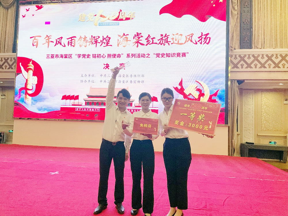五年來,在各級組織的關(guān)懷和支持下,三亞店先后榮獲“全國巾幗文明崗”“中央企業(yè)團工委青年文明號”“海南省五一勞動獎狀”“海南省先進基層黨組織”等多項榮譽。在2021年各級黨組織“兩優(yōu)一先”的評選中,公司黨委及個人共獲得各級優(yōu)秀共產(chǎn)黨員12人、優(yōu)秀黨務(wù)工作者3人、先進基層黨組織4個,其中,公司黨委書記、執(zhí)行董事高緒江同志榮獲“全國優(yōu)秀共產(chǎn)黨員”,總經(jīng)理趙遠昭同志榮獲“國資委優(yōu)秀共產(chǎn)黨員”,第二黨支部榮獲“國資委先進基層黨組織”并入選2020年國資委第二批基層示范黨支部。