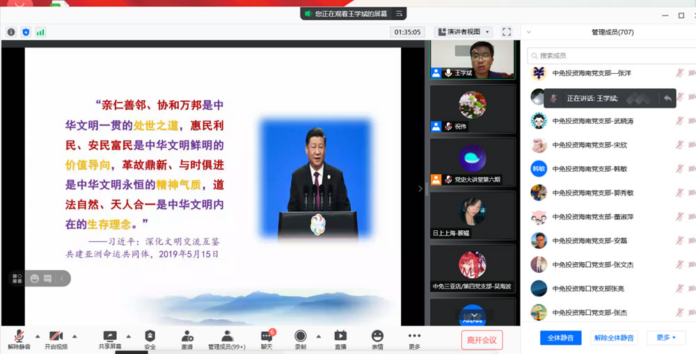 2021年7月15日下午,中旅免稅黨委舉辦第六期“黨史大講堂”專題培訓,此次培訓由海免公司黨委承辦,海免公司黨委班子成員、部分黨員在會議室集中參加培訓,中旅免稅其他各級黨組織黨員和入黨積極分子共700余人通過線上方式聆聽了此次專題培訓。