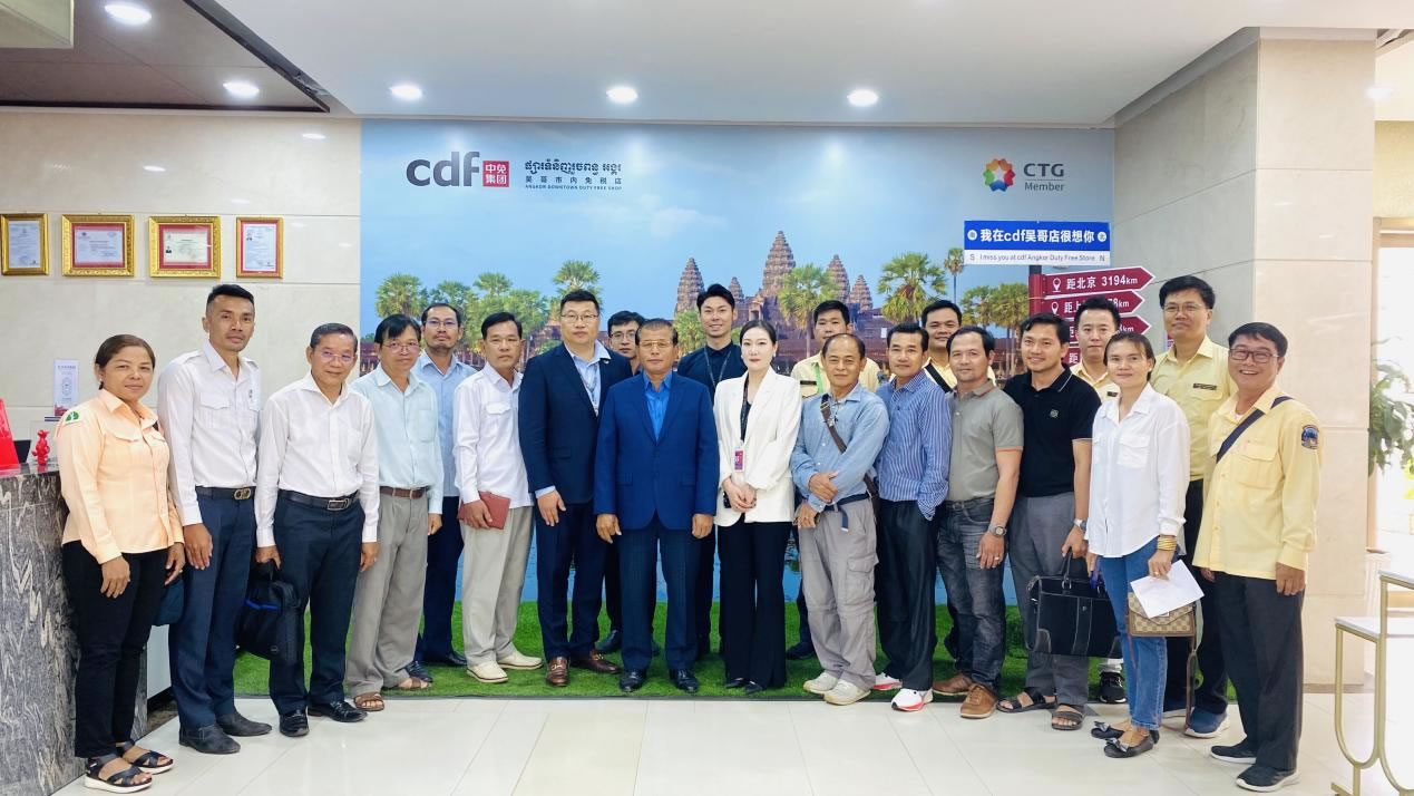 ▲ 暹粒省副省長及相關旅游從業(yè)者一行在cdf吳哥市內免稅店合影